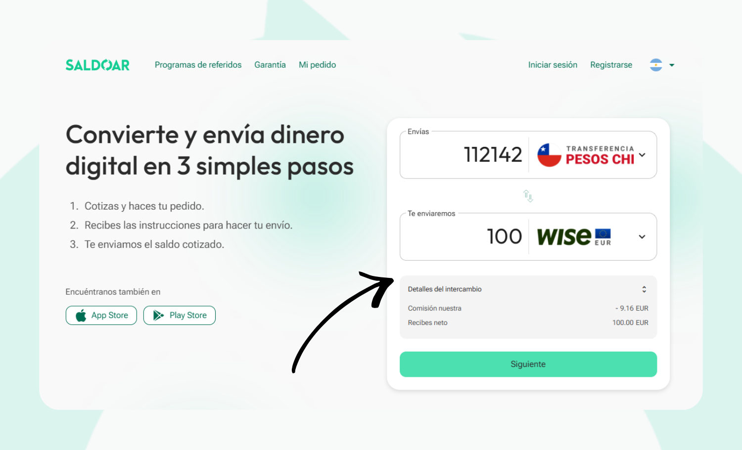 El sistema te mostrará el monto final que recibirás antes de continuar.