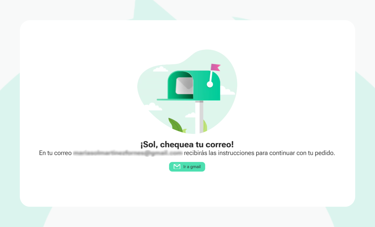 Una vez creado el pedido, recibirás un correo con los pasos a seguir.