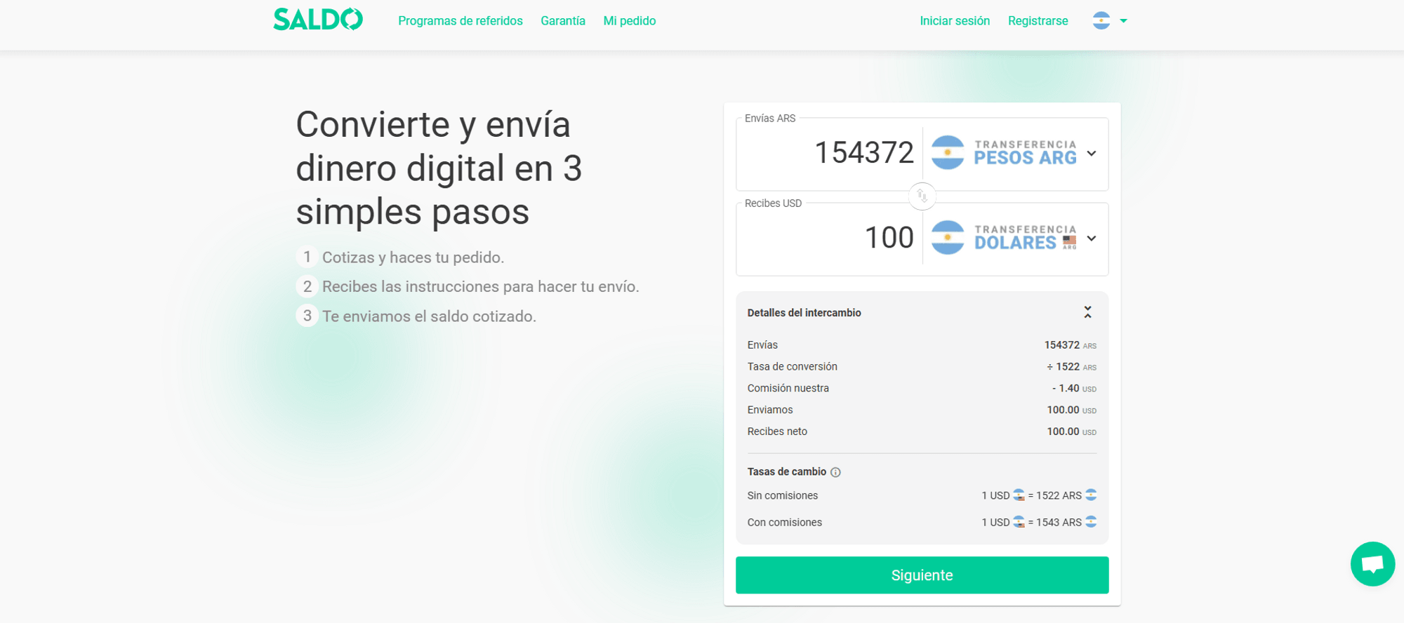 El diferencial de Saldoar está en la transparencia: podés ver cuánto cobra la plataforma, cuánto cuesta el método elegido y cuál es la cotización real que se usa en tu operación.