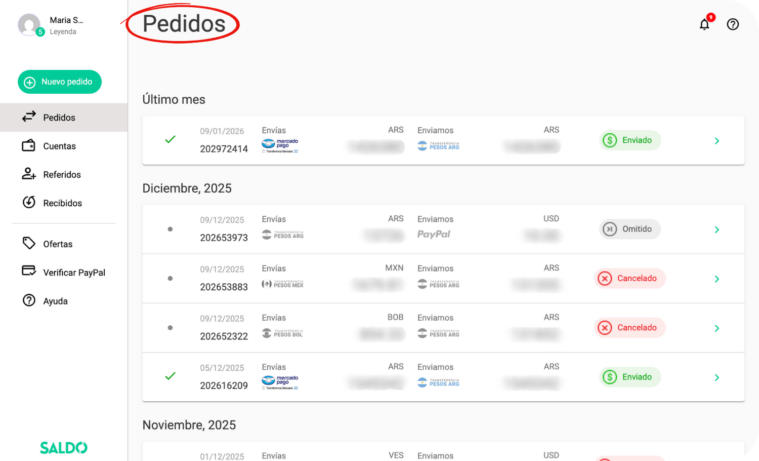 Este lo encuentras en el panel de Saldoar, en la sección de "Pedidos".